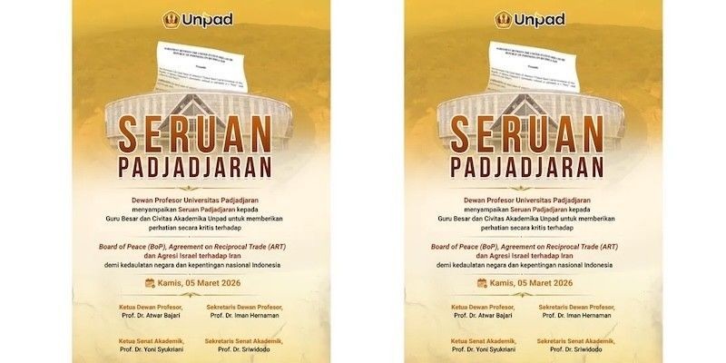 Ratusan Guru Besar dan civitas akademika Universitas Padjadjaran menyampaikan sikap resmi mereka dalam sebuah dokumen akademik bertajuk Seruan Padjadjaran, yang dirilis pada 5 Maret 2026.